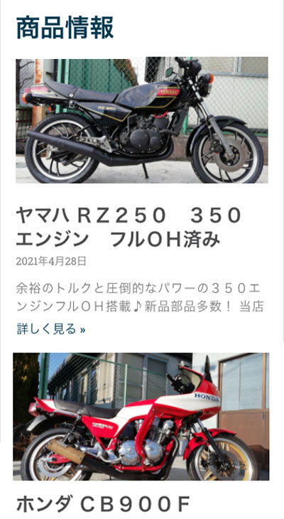 スマートフォンユーザーが圧倒的に多いため、取り扱っているバイクの種類や商品情報などモバイルでも閲覧しやすいデザインを重視しました。特にモバイルで閲覧した際のページ移行をスムーズにしたり、各商品ページから簡単にお問合せいただけるよう考慮して制作しています。