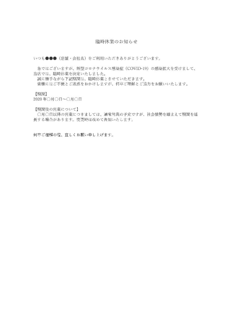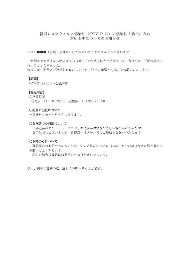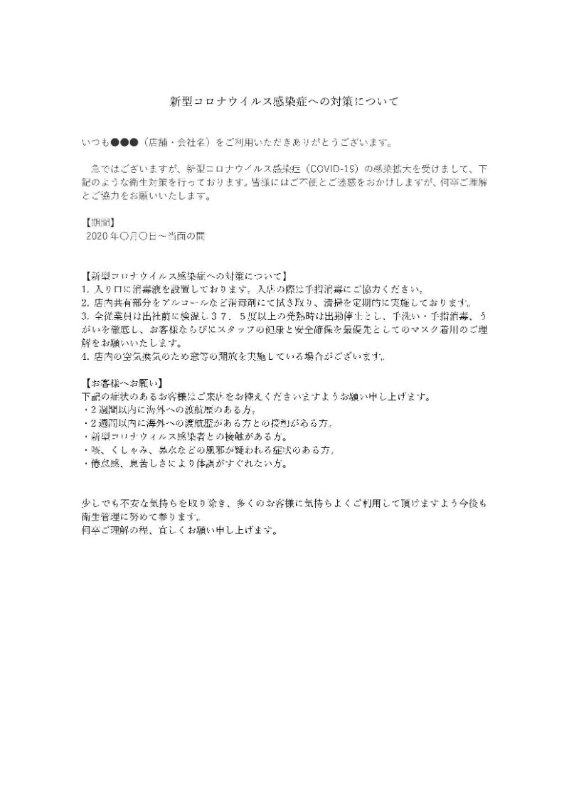新型コロナウィルス対策についての例文ダウンロードと