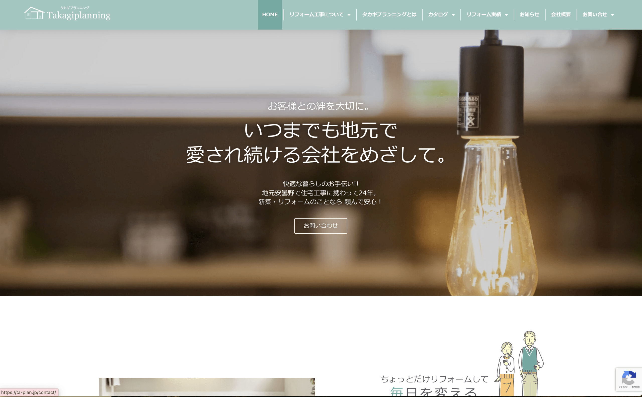 有限会社タカギプランニングWebサイトへ 有限会社タカギプランニングweb design(ウェブデザイン PC用) 安曇野市を中心にリフォームを手掛ける企業様のホームページを制作しました。既存のイメージを踏襲しつつ、より