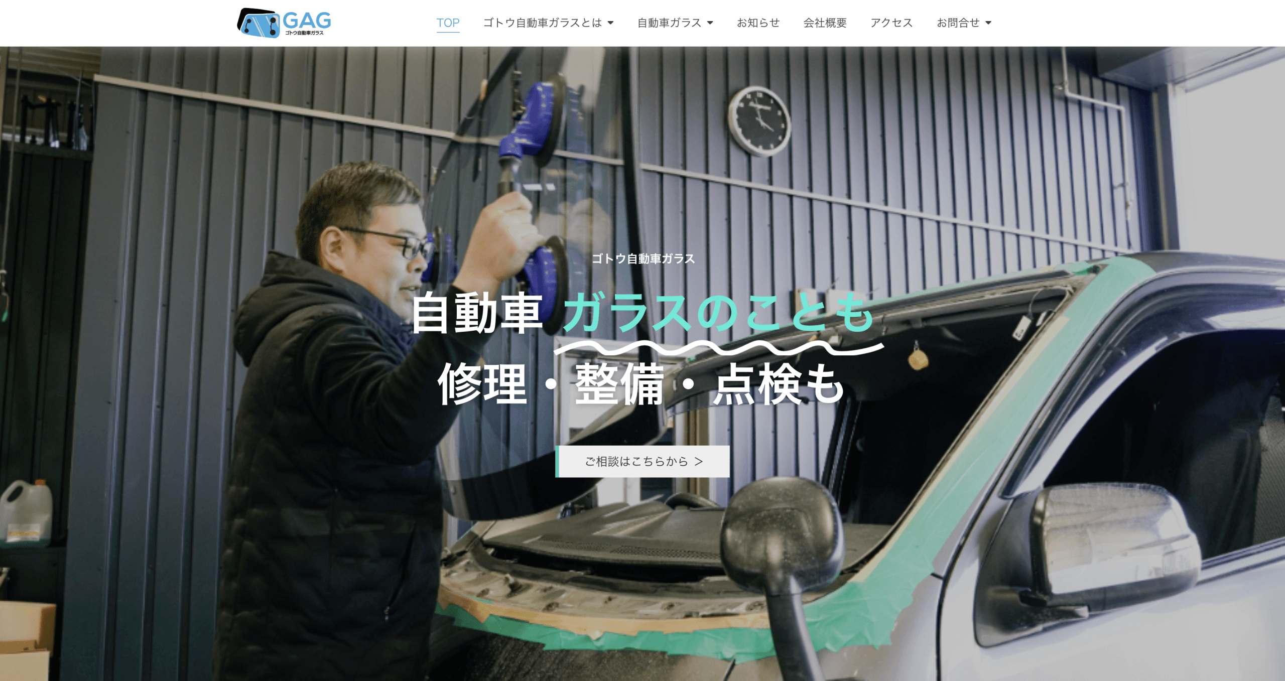株式会社 ゴトウ自動車ガラスWebサイトへ 株式会社 ゴトウ自動車ガラスweb design(ウェブデザイン PC用) 松本市で自動車ガラスの修理を手掛ける企業様のホームページリニューアルを実施しました。急なトラブルにも