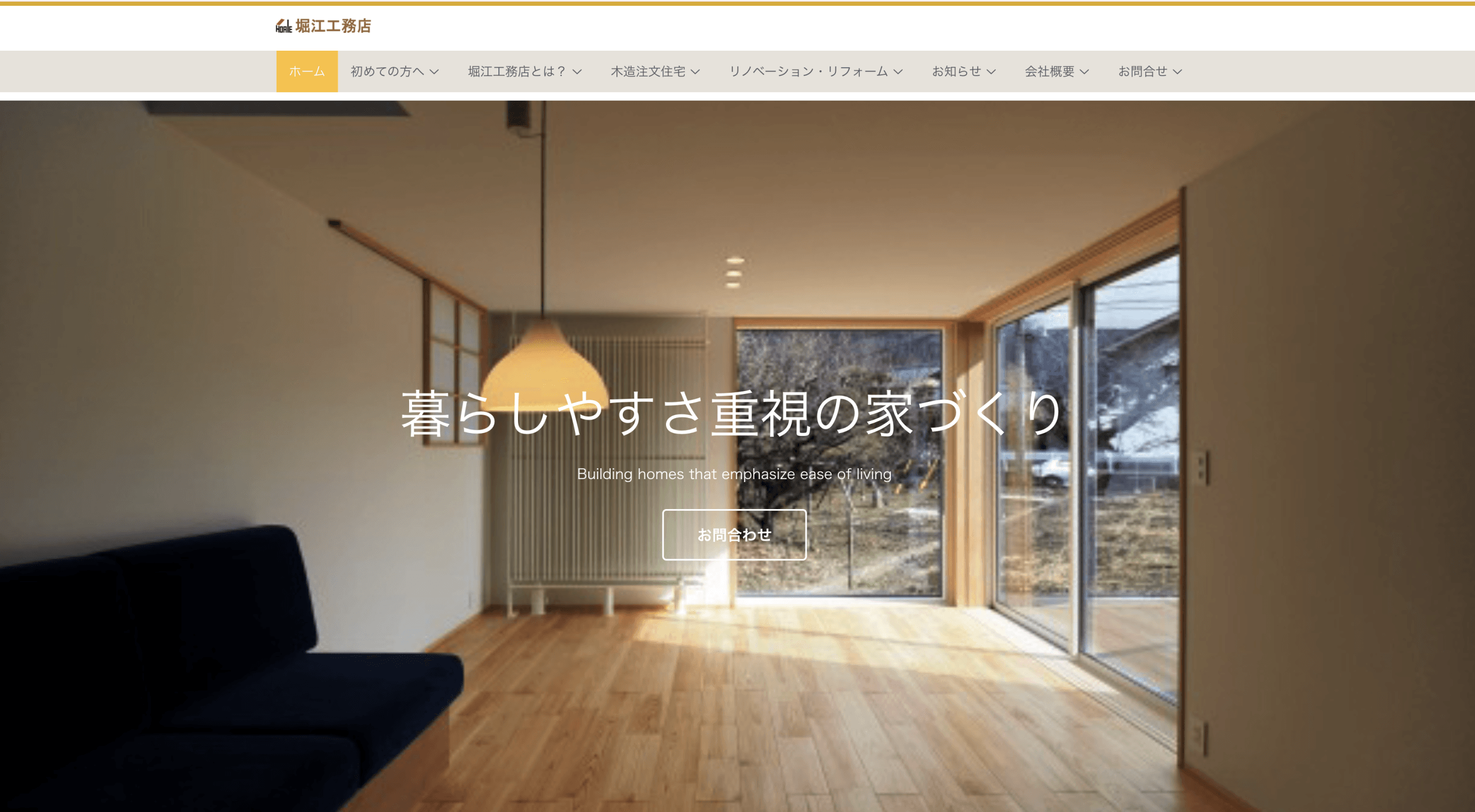 有限会社堀江工務店Webサイトへ 有限会社堀江工務店web design(ウェブデザイン PC用) 松本市で地域に根ざした家づくりを手掛ける堀江工務店様のホームページリニューアルを担当しました。ウェブサイトでは、実際に建