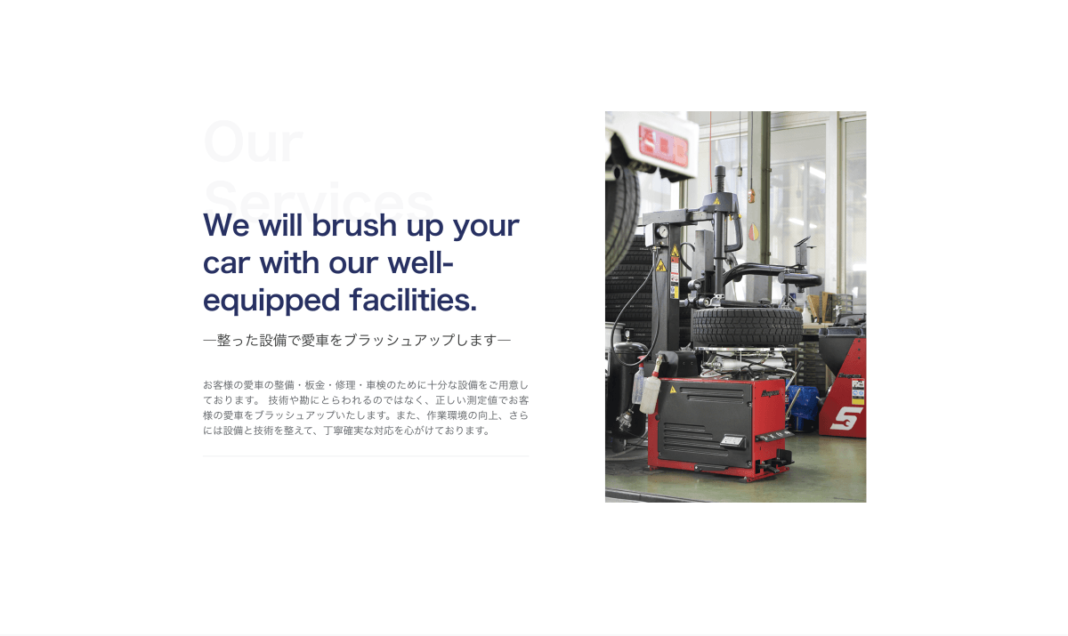 松本市で自動車の整備、修理、販売を手掛ける企業様のホームページリニューアルを実施しました。お客様が安心してサービスを利用できるよう、提供するサービス内容(車検、点検、修理、新車・中古車販売など)を分かりやすく整理し、信頼感を伝えるデザインを心がけました。実績豊富な整備士の紹介や、最新の設備情報を掲載することで、技術力の高さをアピールしています。お客様が求める情報にスムーズにアクセスできるよう、サービスごとの詳細ページも充実させています。