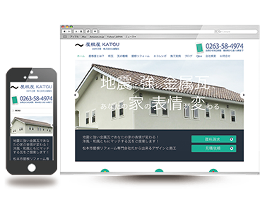 松本市瓦の葺き替え工事専門店ホームページ制作 信州百年企業に昨年表彰された加藤瓦製株式会社様の屋根瓦リフォーム専門のホームページです。松本市内にはWeb上ではあまり競合がない瓦・樋・エコ瓦(庭に敷くタイプ)を扱っている会